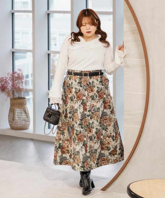 | 3Lサイズを着用してちょうどいいサイズ感でした。程よくゆとりを持たせたシルエットなのでボディラインを拾わず、華奢見せ&女性らしさをプラスする印象でした!顔周りをスッキリ見せるドレープがシンプルながら女性らしいデザインで、こなれ感プラスして1枚で大人っぽい洗練された雰囲気になれます♪柔らかく着心地の良いリブ素材とシンプルなカラー展開で、合わせるアイテムを選ばないのもうれしいポイント。お袖はレースが重なっていてポイントになり女性らしさをプラスしてくれます!1枚で主役になるトレンド感あるトップスなので1枚は持っていたいアイテムです◎ |