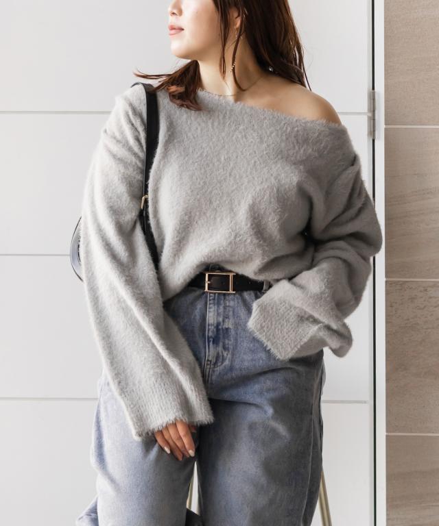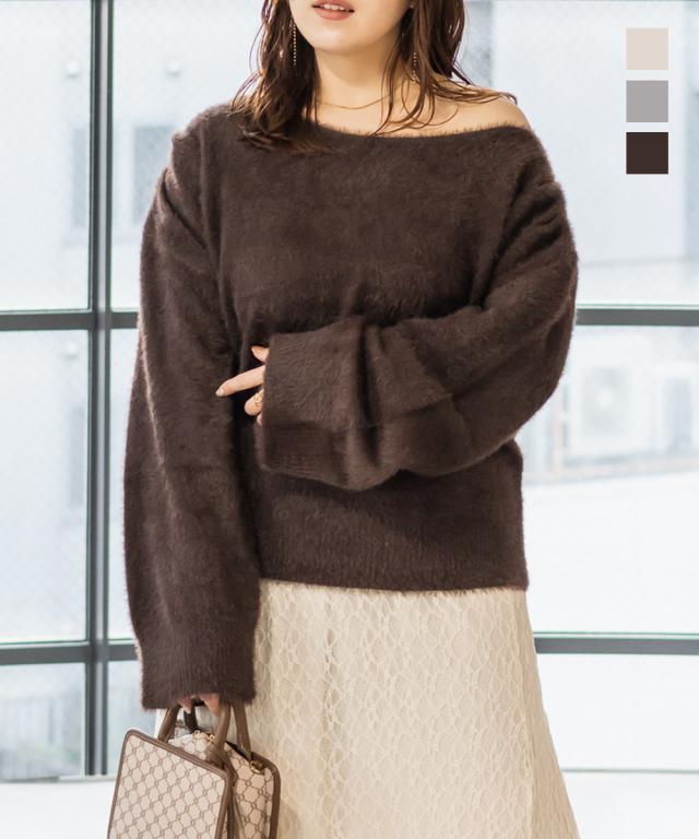 大きいサイズ/レディース/LL/3L/4L/CLETTEオリジナルオフショルシャギーニット