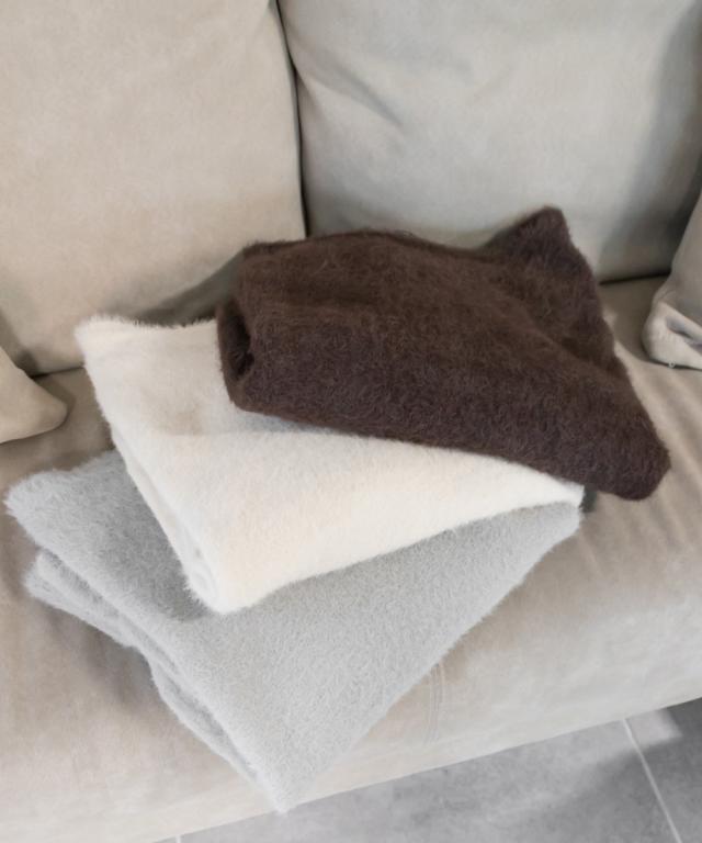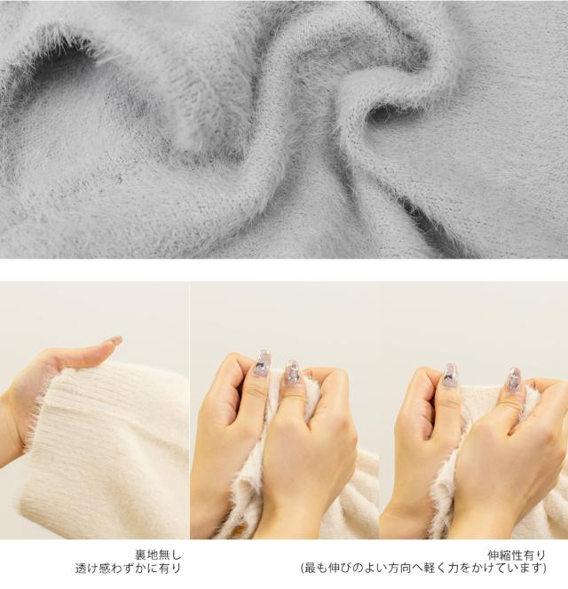 | 柔らかく上品な程よい毛足のシャギーニット素材。 |