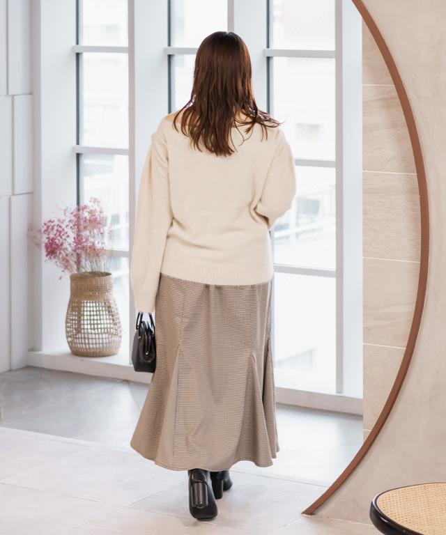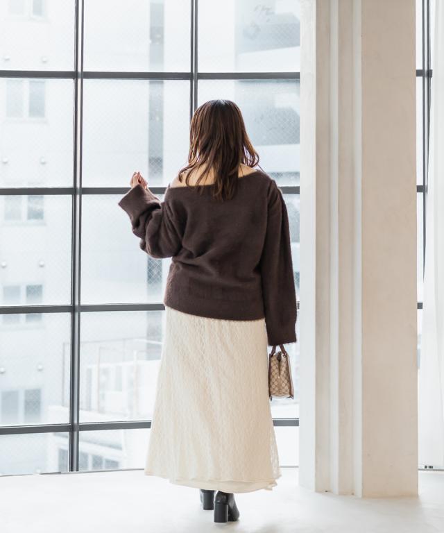 | 3Lサイズを着用してちょうどいいサイズでした。ゆるっとしたシルエットと伸びのいいシャギーニットが抜群な着心地でした!すっきりと開いたネックラインでオフショルやワンショルにしても大人っぽく着こなせます◎顔周りもすっきりとした印象で着用できました。着丈が長めでゆるっと着用してもかわいいし、色々なスタイリングに着回しできます♪ |
