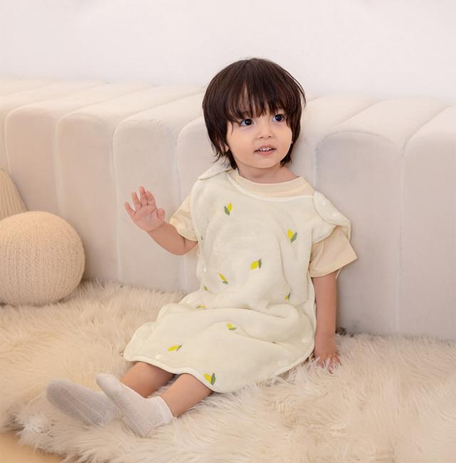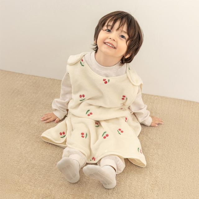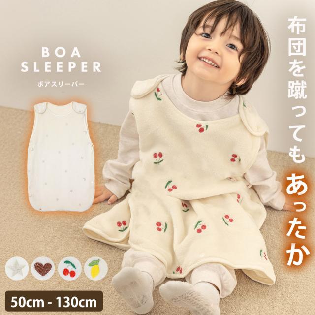 スリーパー ガーゼ フリース キッズ 女の子 男の子 赤ちゃん ユニセックス ルームウェア ノースリーブ 2WAY ボア 防寒 保温 寝冷え対策 肩 股 脇下 スナップボタン もこもこ 裏地付き 洗える 手洗い 50 60 70 80 90 100 110 120 130 幼児 保育園 厚手 秋 冬