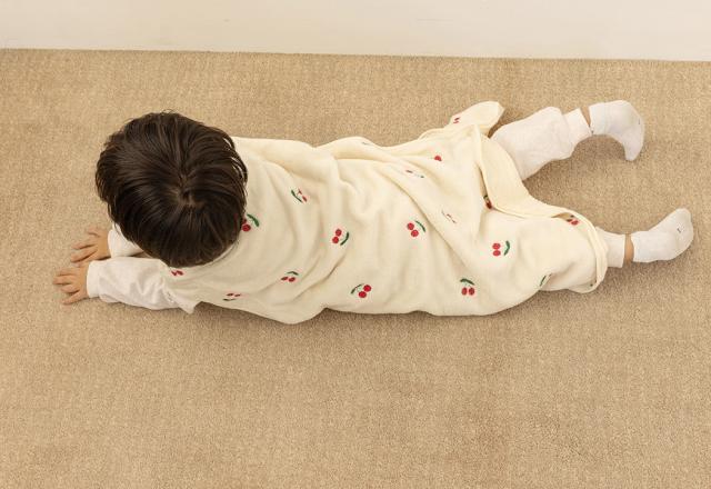 お着替えやオムツ替えがしやすいのはもちろん寝返りが増えてもめくれ上がりにくく、快適に過ごせます。