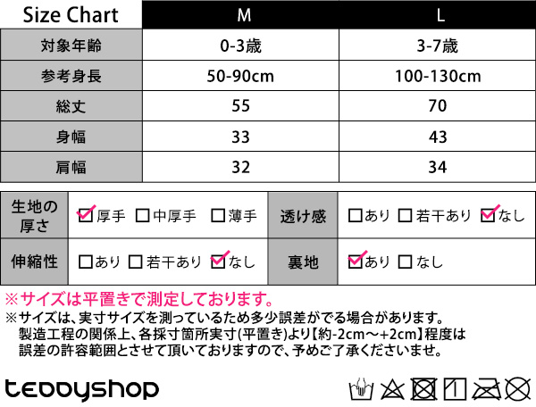 製造工程の関係上、各採寸箇所実寸(平置き)より【約-2cm〜+2cm】程度は
