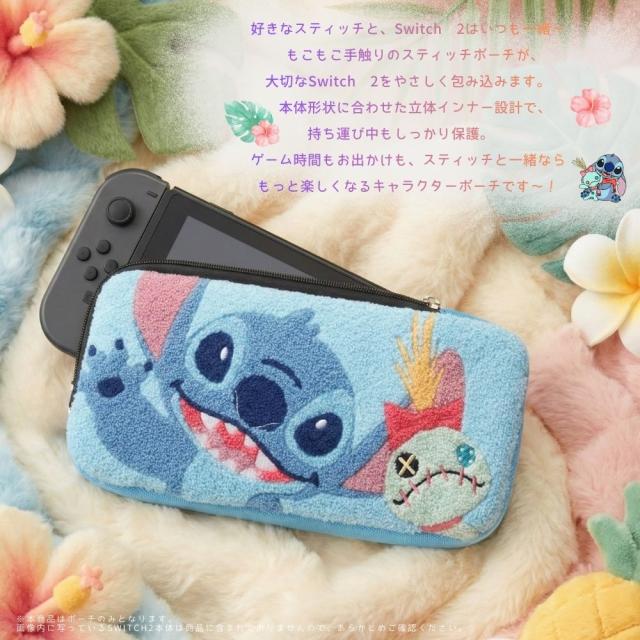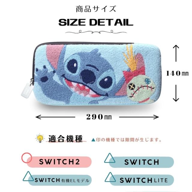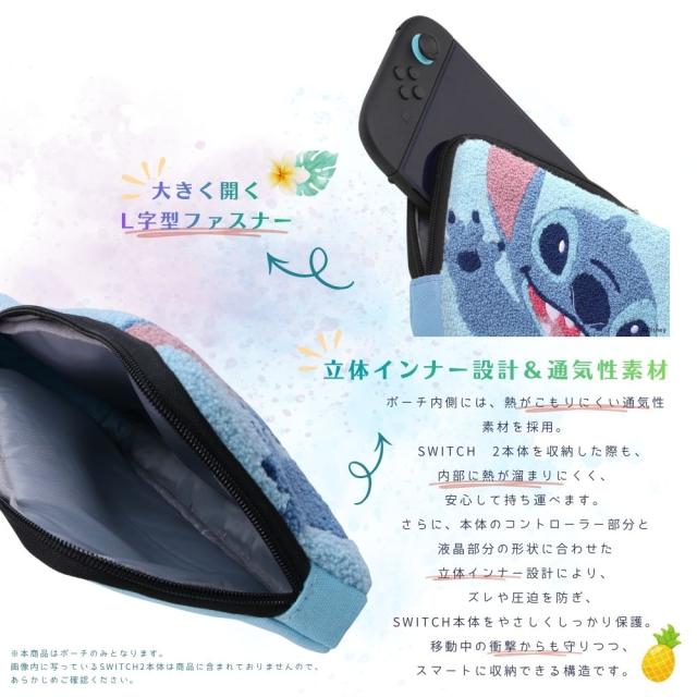 Switch2 ケース ディズニー スティッチ Nintendo Switch2用 任天堂 ニンテンドー スイッチ スイッチ2 専用ケース キャラクター Disney STITCH かわいい おしゃれ 人気 ポーチ 収納ポーチ 保護 持ち運び ゲーム カバー 本体収納 もこもこ 刺繍 傷防止 傷つかない