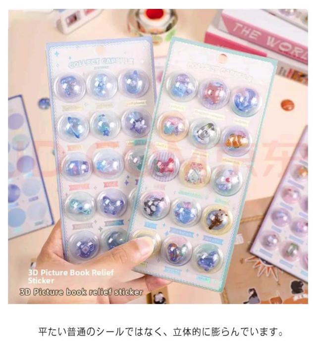 【3枚セット】ぷくぷくシール カプセルシール 3D シール 立体シール ぷっくりシール デコシール デコレーション 装飾 ぶっくり 透明 子供 女の子 小学生 プレゼント ごほうびシール 手帳デコレーション DIY おはじきシール マルチデコ用 スマホケース 可愛い 送料無料