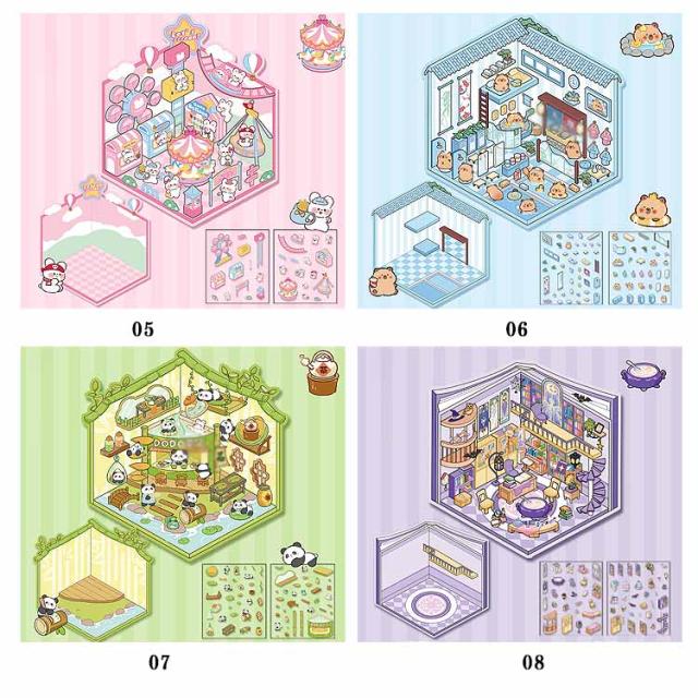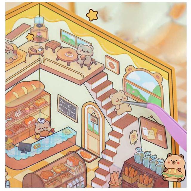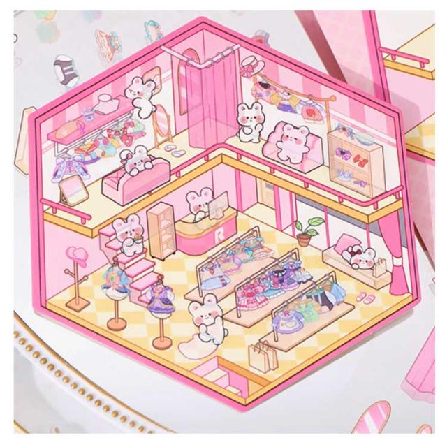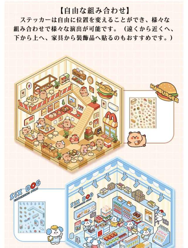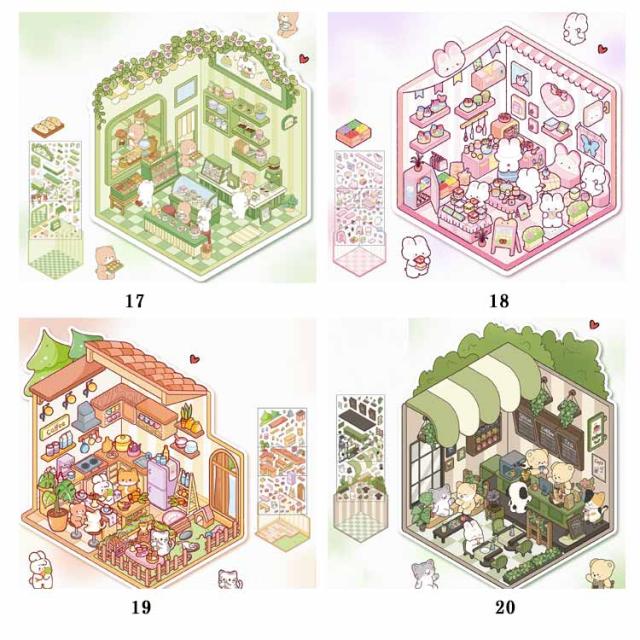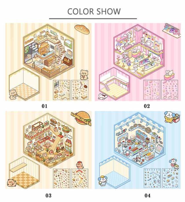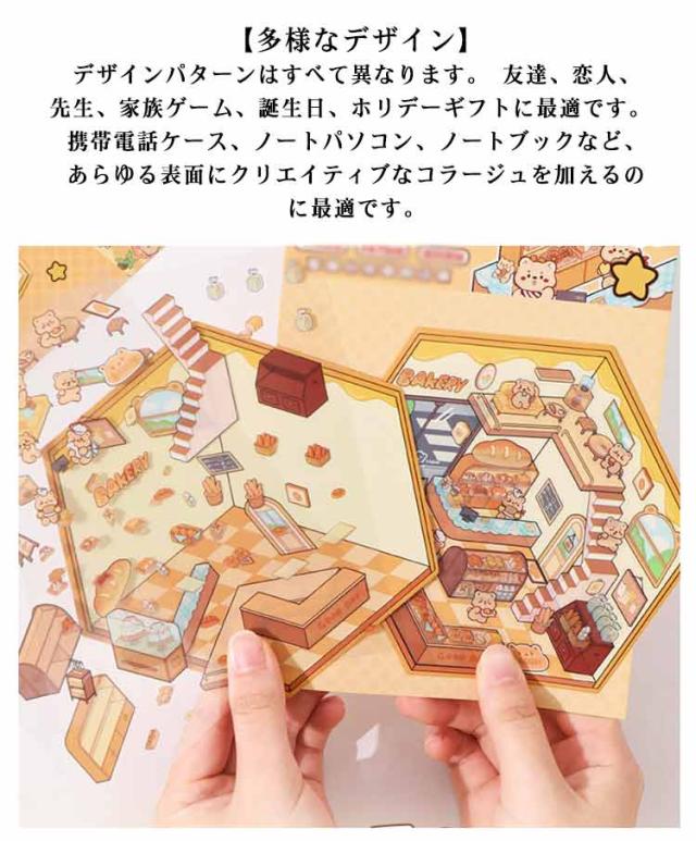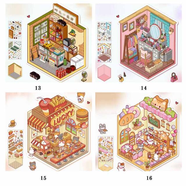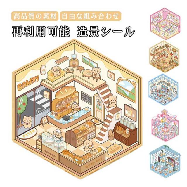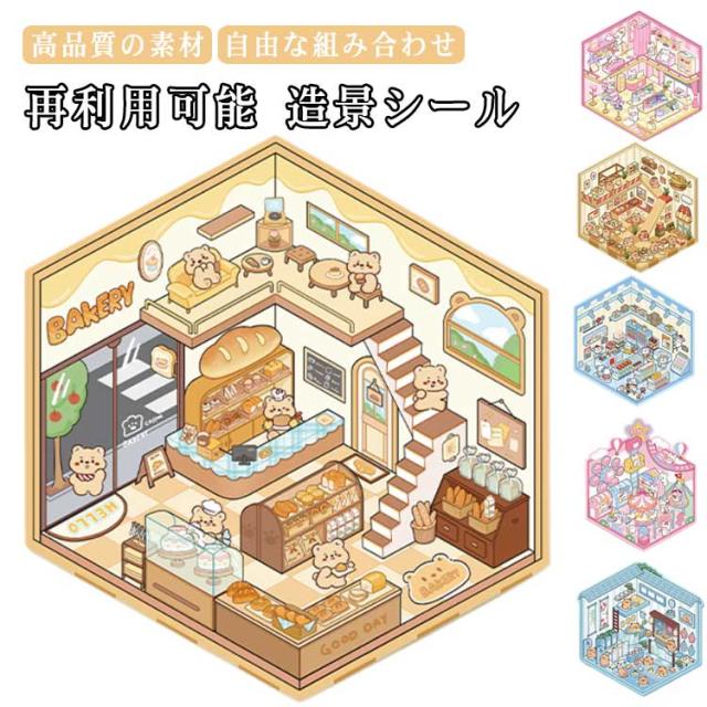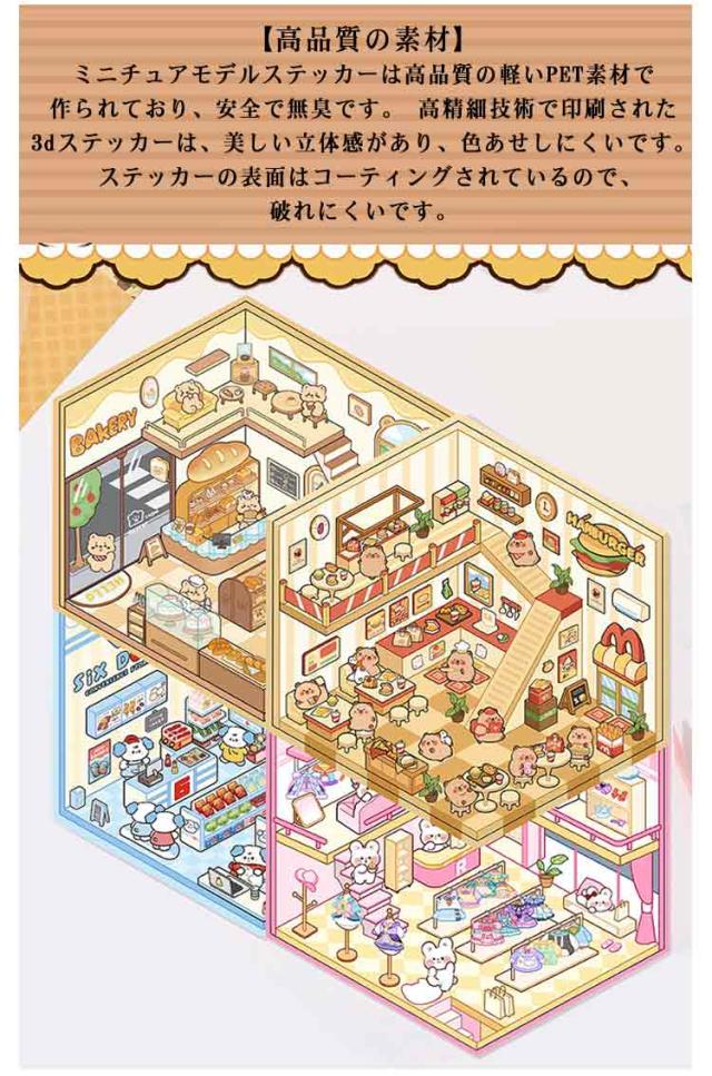 カフェ屋 2.5D 2.5D 4枚セット 半立体 ハウス 洋服や ショップ 造景 子供 スイーツ屋 2.5D お店 ステッカー 大人 パン屋 ミニチュア キット 可愛い DIY