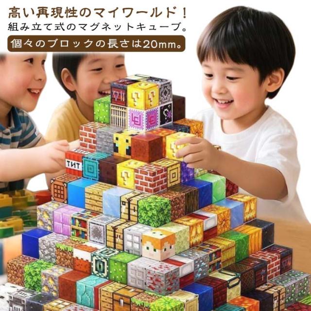 磁石ブロック 卒業 こどもの日 マグネットブロック おもちゃ入園 マインクラフト風 マグネットキューブ 誕生日プレゼント クリスマス 互換 節分 七五三 ひなまつり 15体ミニフィグ 高品質 マイクラ風 収納ボックス付き 色ランダム マグネット