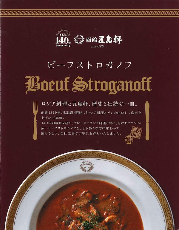 商品紹介 140年の歳月を経て、カレーやフランス料理とともに、今なおファンが多いビーフストロガノフを、より多くの方に味わって頂けるよう自社工場で丁寧にお作り致しました。 五島軒創業の味「ロシア料理」 北海道産の牛肉、玉葱を五島軒秘伝のフォン・ド・ボーで煮込みました。 原材料・成分 牛肉(国産)、玉葱、マッシュルーム水煮(マッシュルーム、食塩)、トマト・ピューレづけ(トマト、トマトピューレ)、濃縮乳、デミグラスソース(豚肉・大豆を含む)、赤ワイン、白ワイン、オニオンソテー、トマトペースト、シチュールー(バナナ・りんごを含む)、人参、クリーム、小麦粉、デミソース、トマトケチャップ、ラード、バター、ビーフ風味エキス調味料、にんにく、ビーフ・チキンブイヨン、ビーフコンソメ、トマトパウダー、食塩、白胡椒/着色料(カラメル)、調味料(アミノ酸等)、増粘剤(加工澱粉)、pH調整剤、酸味料、香料、香辛料抽出物