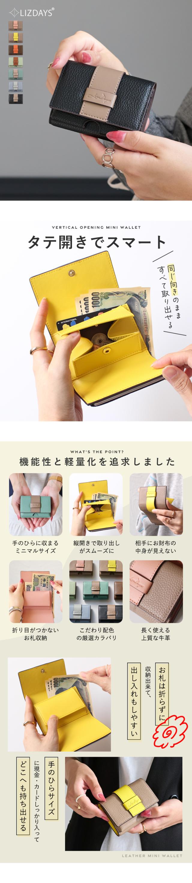 LIZDAYS 財布 レディース 小さめ ミニ財布 本革 お札と小銭 同じ向き コンパクト 薄い 三つ折り財布 カードケース 小銭入れ 小さい 小さい財布 使いやすい お札 折れない 牛革 革 財布 かわいい 大人 上品 リズデイズ【lz-65133】