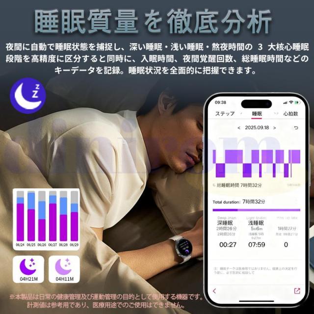 ●24H健康管理:通話可能、カロリー、アラート、睡眠監視などの測定機能付き