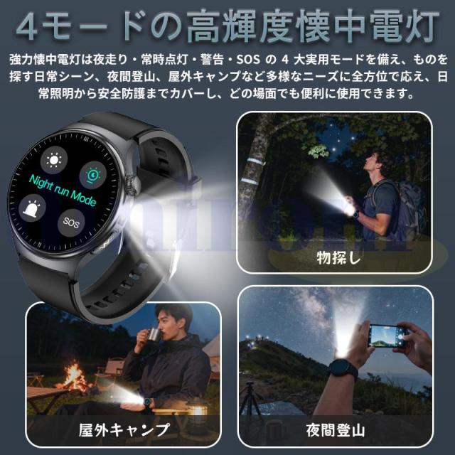 スマートウォッチ 懐中電灯 五臓健康管理 血圧 血糖値測定 心電図 血液成分 尿酸値 BMI体組成 心拍数 血中酸素 体温検知 睡眠管理 女性生理管理 ストレス監視 呼吸訓練 SOSモード 通話機能付き 音楽制御 運動記録 着信通知 IP68防水 着信通知 父の日 母の日 プレゼント