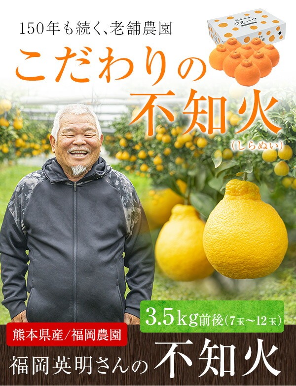 福岡農園 不知火 3.5kg前後 送料無料 熊本県産 熊本 お試し 3キロ 以上 サイズ 果物 スイーツ フルーツ デザート お取り寄せ お年賀 ギフト デコポン と 同品種 熨斗 のし《1月中旬-1月下旬に発送予定》