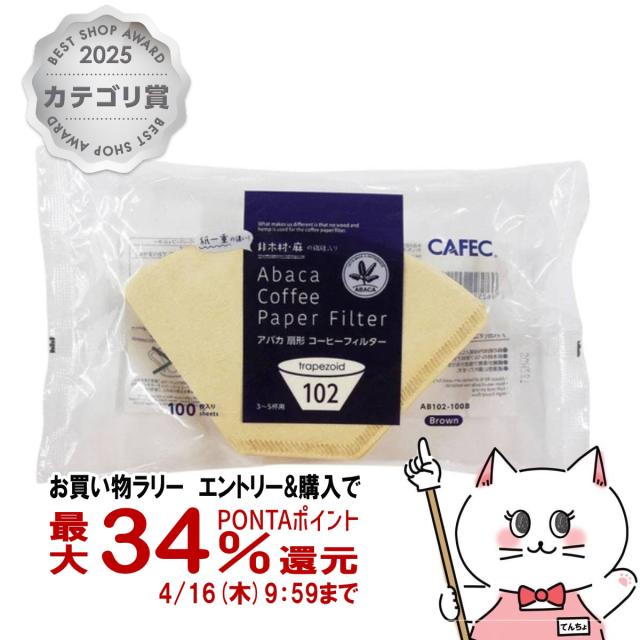 【お買い物ラリー 最大34%還元】CAFEC AB102-100B アバカ扇形コーヒーフィルター 2〜4杯用 100枚入 ブラウン[三洋産業 日本製 台形 無漂白 ハンドドリップ おうちコーヒー][送料無料] (6064209)