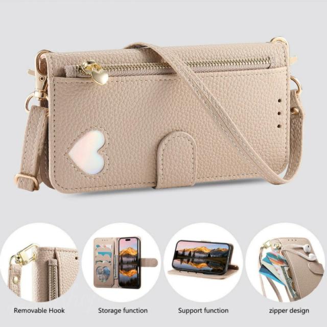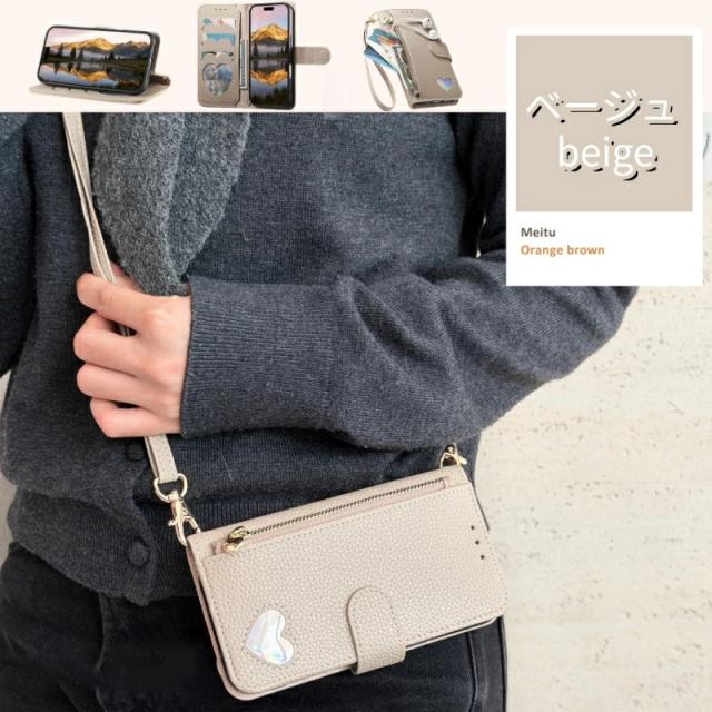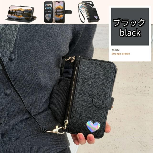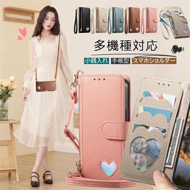 オーロラのハート GalaxyS24ケース GalaxyS25ケース 手帳型 ショルダー Galaxy S26 S25 S24 S23 FE S22 Ultra S21 S20 スマホショルダーケース カード収納 かわいい おしゃれ 耐衝撃吸収 ギャラクシー A25 A56 A55 A54 A53 5G 手帳ケース ストラップ付きスマホケース 財布付き