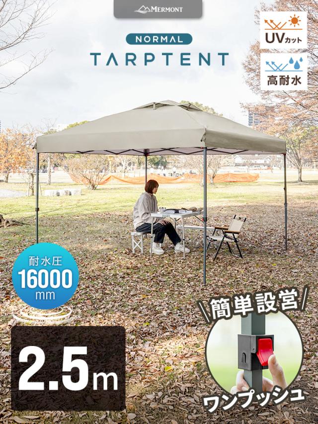 タープテント 2.5m×2.5m ワンタッチ テント スチール タープ 日除け 撥水 耐水圧 16000mm 頑丈 紫外線防止 UVカット ワンタッチテント ワンタッチタープ UV加工 簡単 大型 軽量 日よけテント おしゃれ アウトドア キャンプ 海 BBQ 送料無料 MERMONT WEIMALL