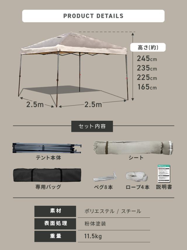 ワンタッチタープテント2.5m×2.5mです。