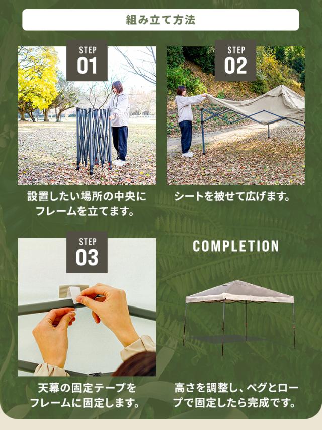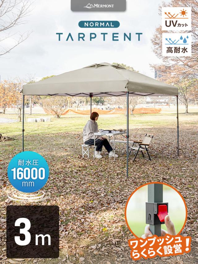 【高耐水圧 16000mm】 タープテント 3m×3m ワンタッチ テント スチール タープ 日除け 撥水 頑丈 紫外線防止 UVカット ワンタッチテント ワンタッチタープ UV加工 簡単 大型 軽量 日よけテント おしゃれ アウトドア キャンプ 海 BBQ 送料無料 MERMONT WEIMALL