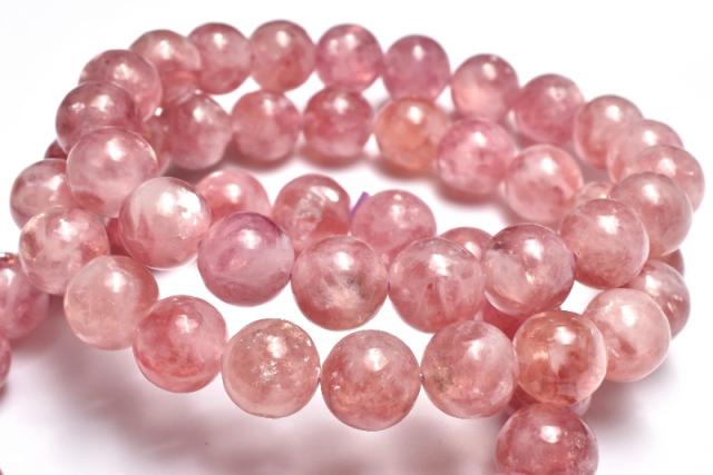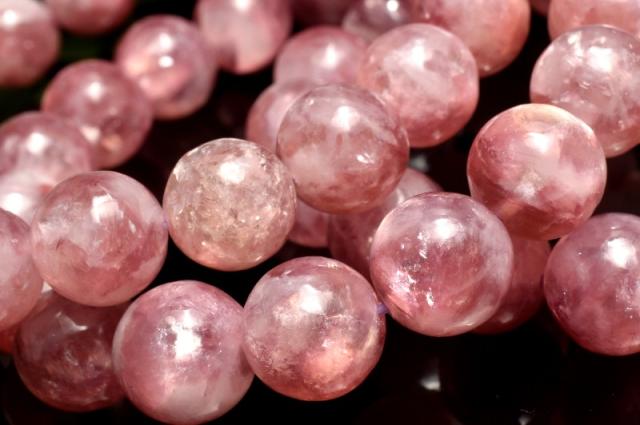 | 特徴・意味 | レピドライトにシリカが入り込む自然が生み出した神秘のレア石です。 透明感があり、桜色でかわらしく春の時期にピッタリのアイテムです。 シリカの中に雲母が包まれておりキラキラと輝きを放っています。 産出量が少ないため比例して流通量も少なく市場に回っている数が少ない希少品。 内包された結晶から輝きを放つ珠もありオススメです。 レピドライトは、キラキラとしたうろこ状の結晶が特徴である雲母の一種。雲母自体はよくある鉱物ですが、リチウムを多く含むことによって淡い紫やピンク色に染まったものが、レピドライトと呼ばれています。トルマリンやクンツァイトなどと一緒に見つかることが多く、混合結晶が産出されることもあるようです。 雲母は結晶の軸に沿って一定の方向に割れやすい性質を持っています。レピドライトは硬度が2.5〜4と柔らかい石のため、強い衝撃には注意が必要です。 レピドライトは変革の石と呼ばれ、新しい物事へ挑戦する時に身に付けると良いでしょう。環境の変化を受け入れられるようになります。高いリラックス作用でストレスを軽減するといわれることから、高ぶった精神を落ち着かせたり、安眠や疲労回復のお守りとして用いられる「レピドライト」。うつがちで気分が落ち込んでしまった人には、ゆったりとした穏やかな気持ちをもたらしたり、落ち着きがない人には、冷静さと忍耐力を養うことで、物事に集中して取り組めるよう支えてくれます。 |