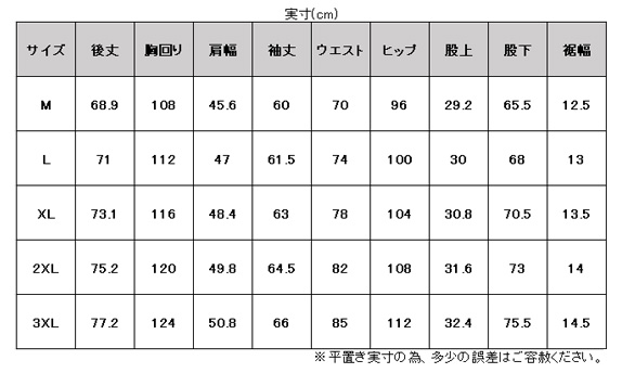 サイズ:身長 / 胸囲 / 胴囲
