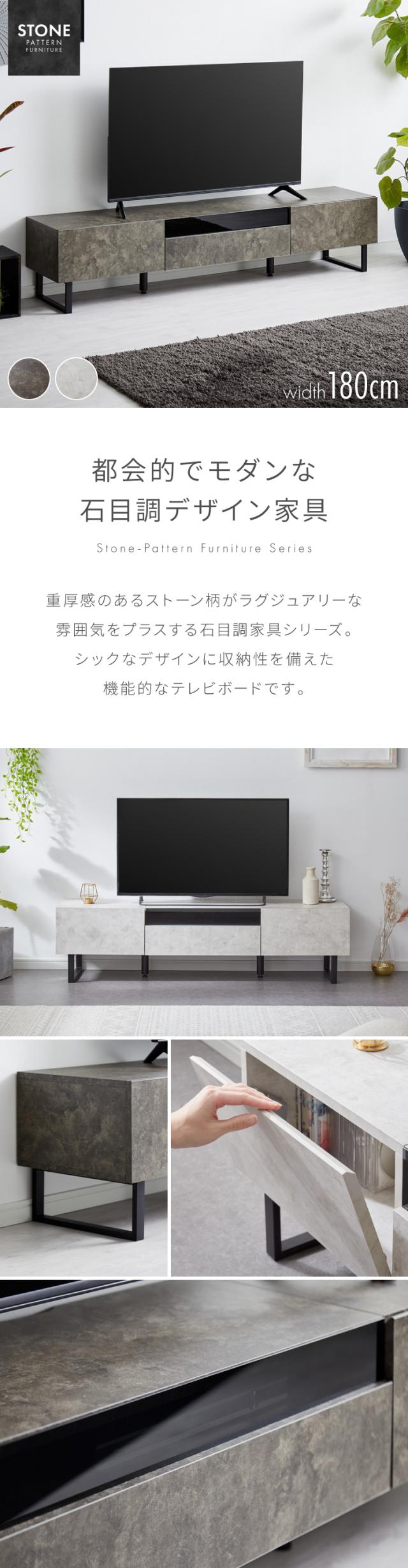 テレビボード ストーン調 幅180cm ガラス窓 フラップ扉2杯テレビ台 180 ローボード ロータイプ TVボード TV台 セラミック調 グレー 引き出し テレビラック AVラック リビング収納 テレビラック【送料無料】