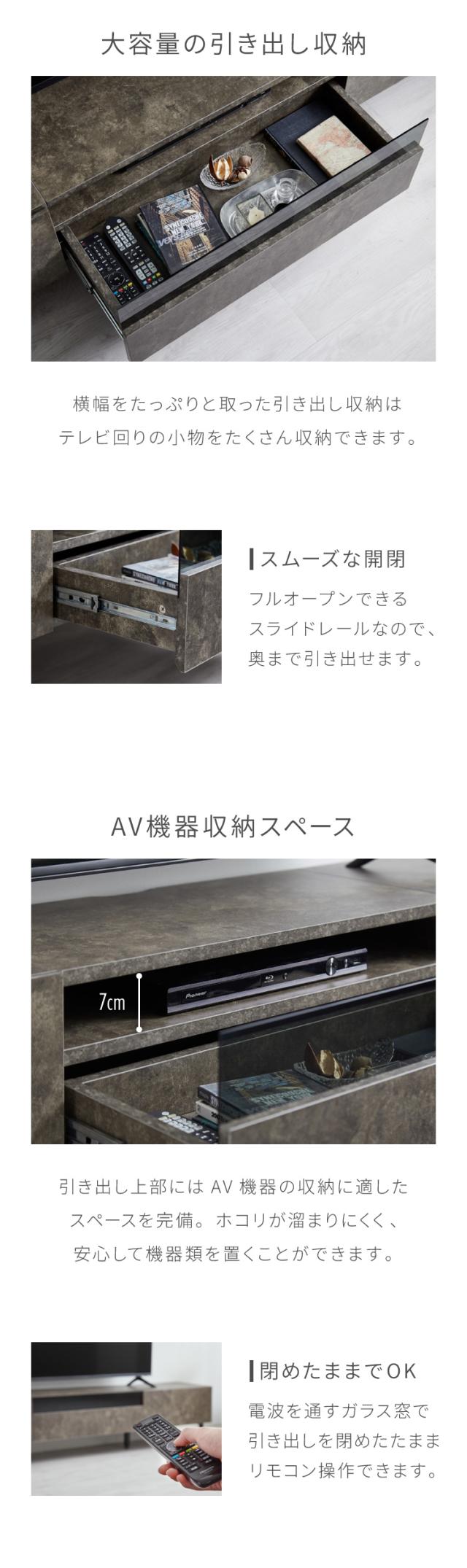 ・石目調の重厚感があり、高級感があるテレビ台です。