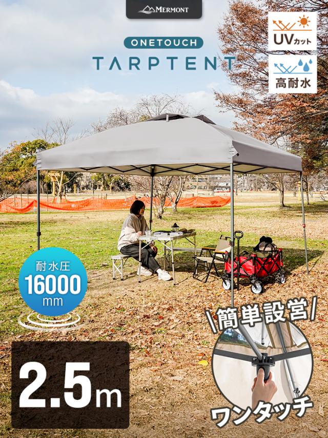 【高耐水圧 16000mm】 タープテント ワンタッチタープテント 2.5m 頑丈 スチールテント タープ 通気孔付き 簡単 大型 軽量 UVカット 撥水 防水 日よけ 日除け おしゃれ 庭 プール アウトドア キャンプ バーベキュー イベント 運動会 花見 送料無料 MERMONT WEIMALL