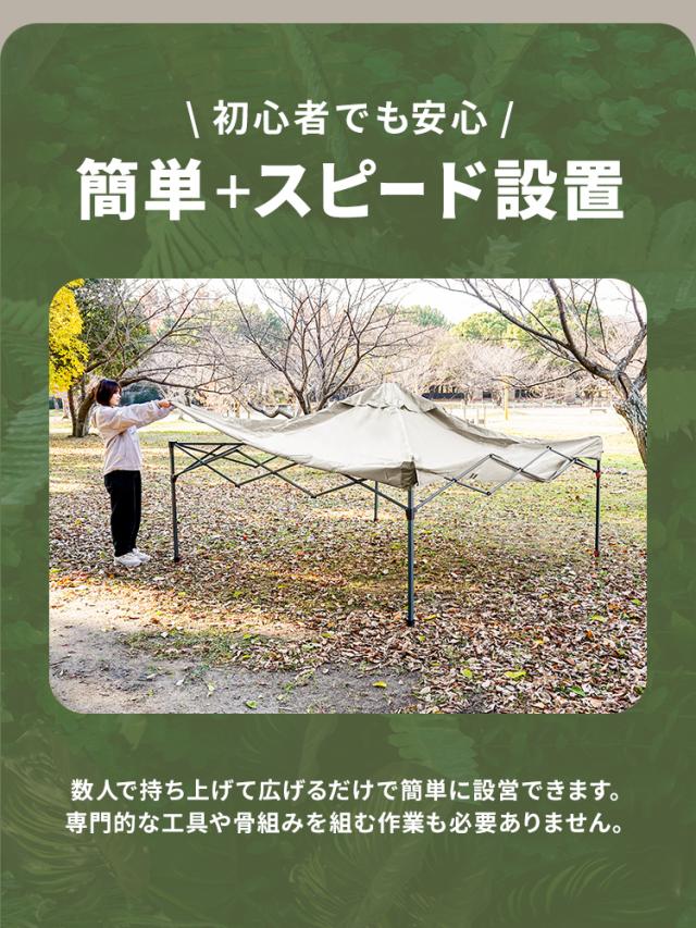 急な雨が降っても安心の撥水加工が施されており、大人数のバーベキューやスポーツ観戦、アウトドア、休憩所にぴったり。