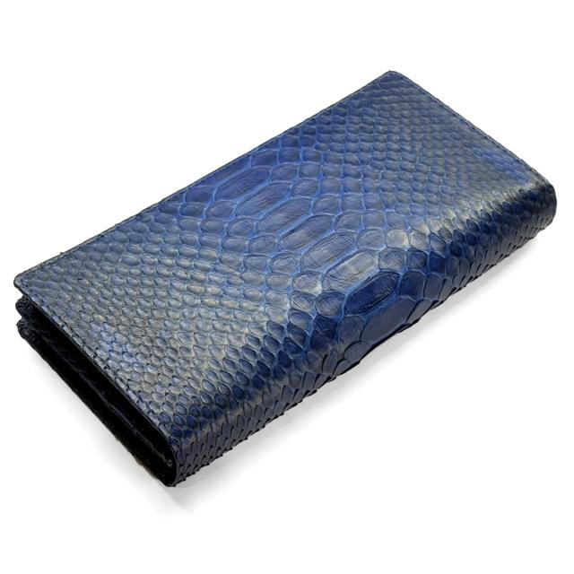 W通しマチ 長財布 メンズ レディース パイソン 藍染め 蛇革 本革 大容量 札束 カード収納 メンズ レディース 日本製 希少 高級 ファッション