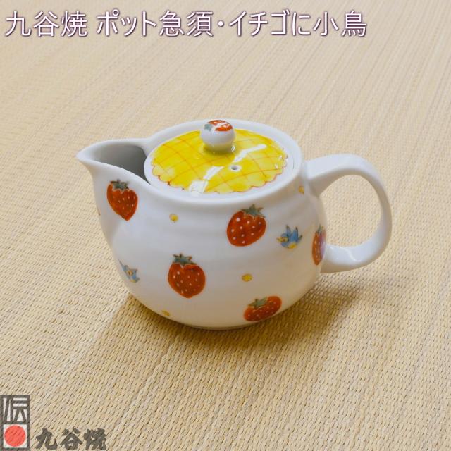 九谷焼 ポット急須・イチゴに小鳥・網付