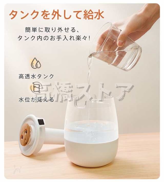 カラー:ホワイト、グリーン 【商品説明】 超音波技術:超微細ミストを吹き出し、より遠くまで潤いを届け、結露・床濡れ・頻繁給水心配なし 1L大容量:頻繁に給水が不要、一回の満給水で20時間連続加湿が可能 UV除菌機能:UVライトは水中の細菌の核酸を損傷破壊し効果的に除去します。 12畳の部屋対応:広い部屋でもムラなく隅々まで加湿することができます。 空焚き防止:水がなくなると自動的に停止になるので、外出中や睡眠中に消し忘れの心配もなく安心して利用できます 3段階加湿モード:高噴霧・中噴霧・断続的な噴霧 超静音設計:36db動作音で就寝時や読書時の使用も音が気にならずストレスフリー。 旅行、車用、寝室、オフィスなどに最適です。 |