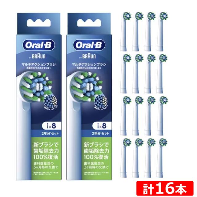 【2セット】ブラウン オーラルB 電動歯ブラシ用 替えブラシ マルチアクションブラシ 交換カラーシグナル付き 8本入り×2セット 計16本 EB50RX-8-EL-2SET ホワイト BRAUN