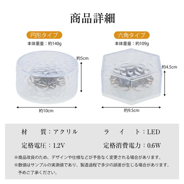 【サイズ】:円形タイプ(約)直径10cm×高さ5cm、六角タイプ(約)幅9.5cm×高さ4.5cm
