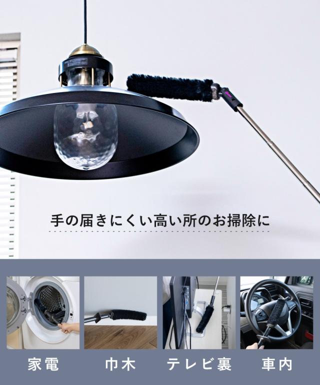激落ちくん ホコリ取り トレループ 伸縮 ハンディモップ ケース付き ( Premium 長さ40〜93cm ケースに通すだけ クリーン機能付き モノトーン シンプル ケース モップ 角度調節 時短 掃除グッズ 掃除用品 清掃用品 便利 便利グッズ )