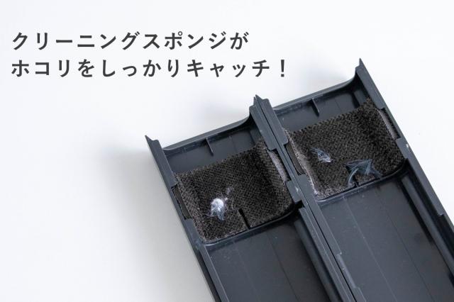 クリーニングスポンジは両面仕様で、ひっくり返してキレイな面を使えます。汚れが目立ってきたらテープや掃除機でお手入れできます。