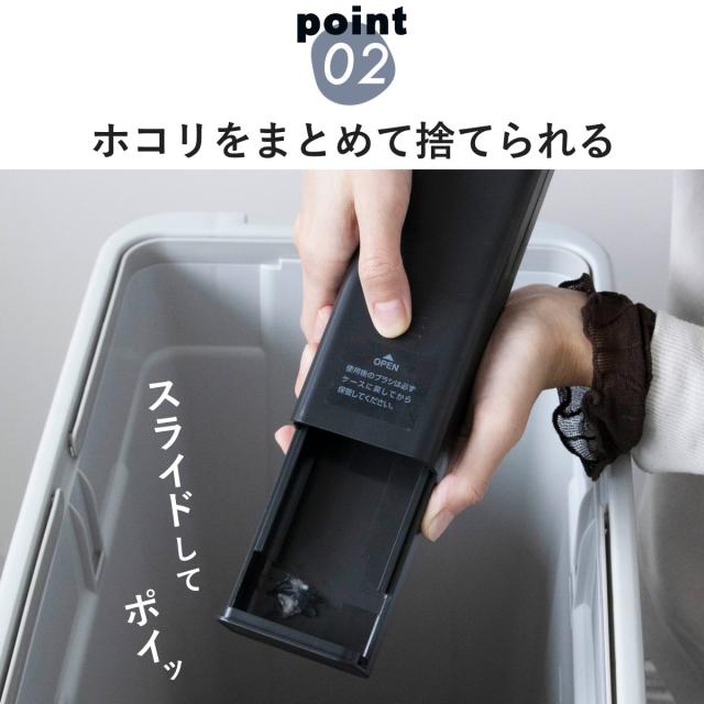 ケースはスライド開閉式。溜まったホコリもケースを開けてサッと捨てられるので、お手入れがとてもラクです。