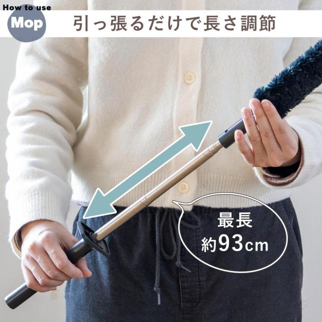 モップと柄を持って引っ張るだけで簡単に伸び、手の届きにくい場所も無理なくお掃除できます。
