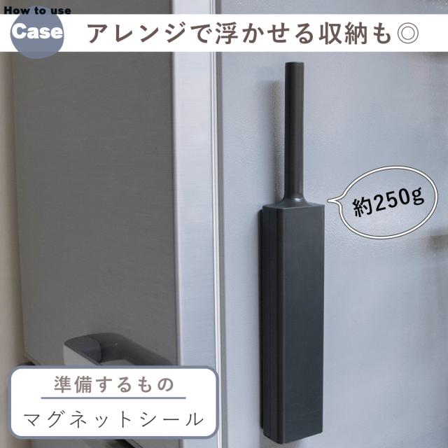 お手持ちのマグネットシールをケースに貼ると、壁面を使った浮かせる収納に。洗濯機や冷蔵庫にピタッとくっつき、空間を有効活用できます。