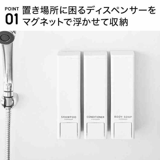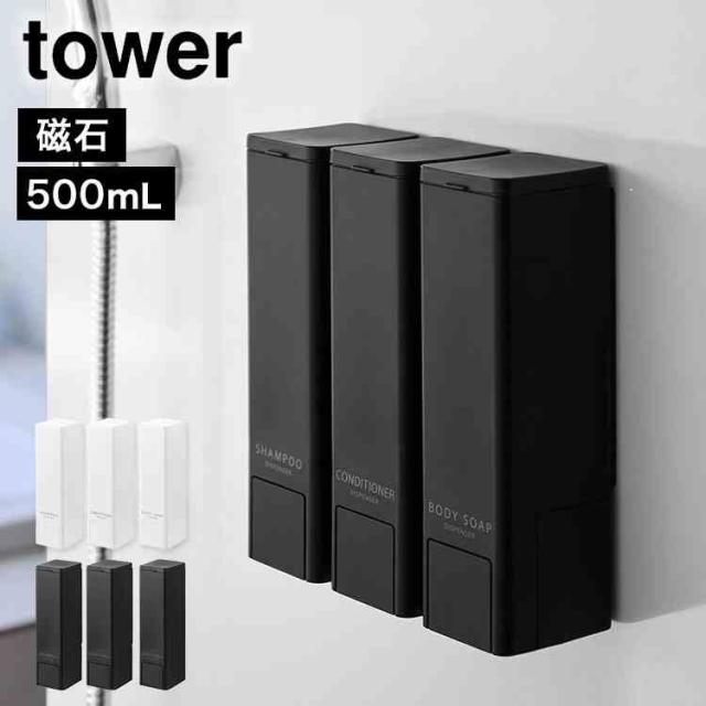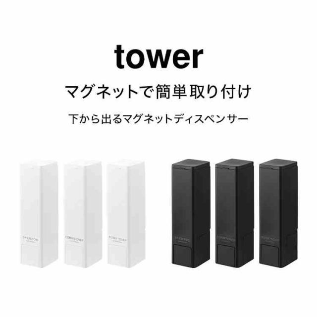 山崎実業 下から出るマグネットディスペンサー タワー シャンプー コンディショナー ボディーソープ tower 公式 10290 10291 10292 10293 10294 10295 ホワイト ブラック ディスペンサー ボトル 浮かせる 収納 マグネット 磁石 詰め替えボトル スリム お風呂 壁付け 500ml