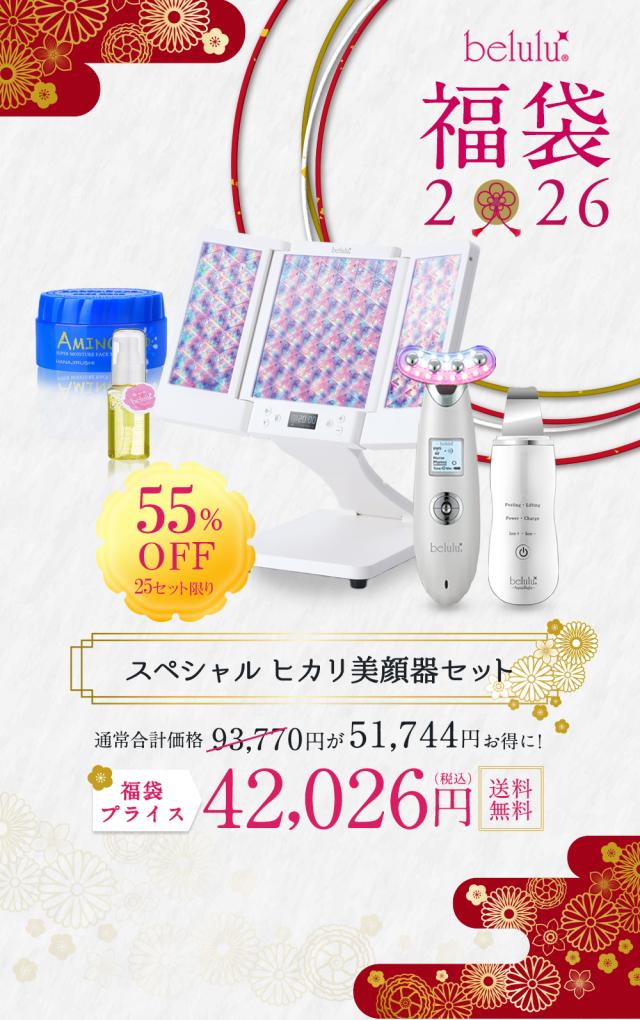 【2026新春福袋 スペシャルヒカリ美顔器セット】 美ルル ヒカリシャイン リバース 美容液 美肌 リフトケア 美顔器 コスメ EMS LED 年齢肌 エイジングケア フォトフェイシャル お年玉 プレゼント ギフト belulu