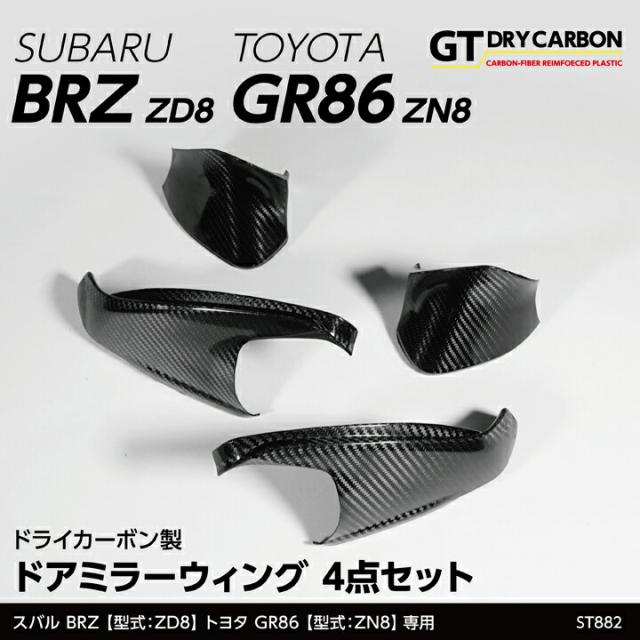 (4月末入荷予定)スバル BRZ(型式:ZD8)トヨタ GR86(型式:ZN8)ドライカーボン製 ドアミラーウィング 4点セット/st882