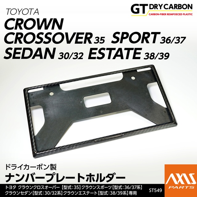 (在庫あり)新基準適合済み トヨタ クラウンクロスオーバー/セダン/スポーツ/エステート(30/35系)用ドライカーボン製ナンバープレートホルダーst549