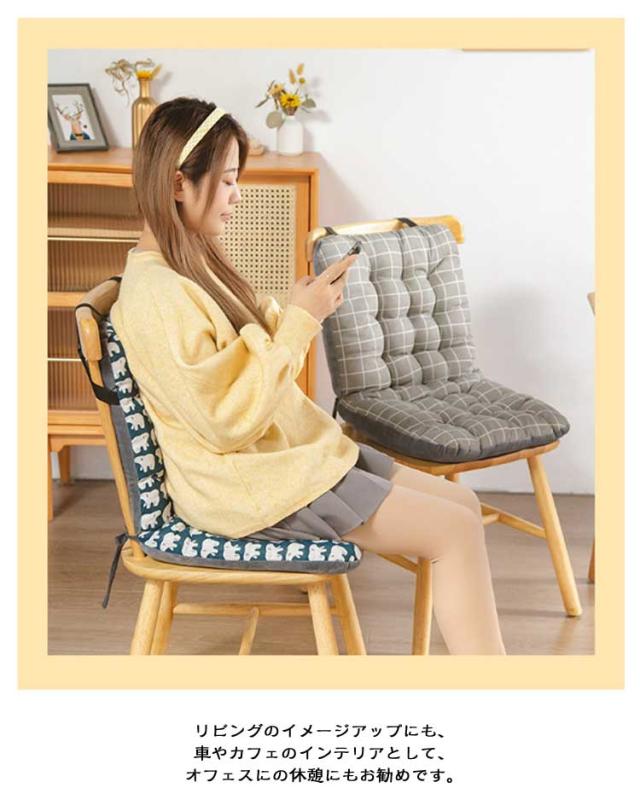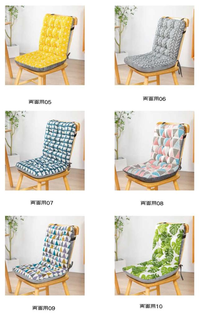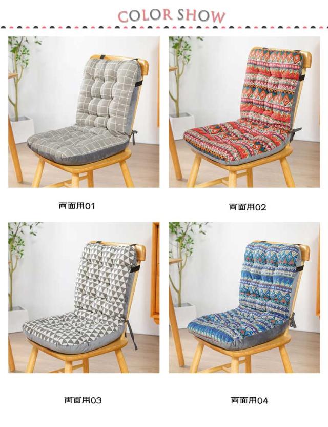 | 両面用! 全10色・2サイズ 背もたれまでカバーできるロングタイプの椅子用クッション 表地、裏地もお使いいただける両面使用可能タイプ。季節や気分に合わせて、使い方をお選びいただけます。 分厚いクッションを使用しているので長時間座っていてもお尻や腰が痛くなりにくいです。 椅子に結んで固定できるヒモとバックルが付いているのでズレる心配がありません。 リビングのイメージアップにも、車やカフェのインテリアとして、オフェスにの休憩にもお勧めです。 | |
