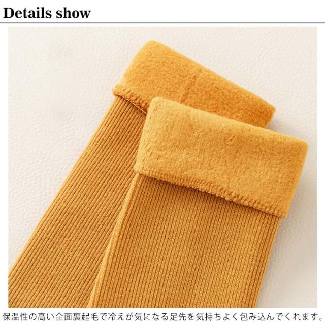 | あったか裏起毛ソックス3足セット。 全体的にふわふわで総裏起毛で、足首からつま先まで暖かく包み込んでくれる◎ 毛足が長めの起毛素材毛布のように一番冷えを感じる。爪先までしっかりと保温! 筒履きやすい、かかとなしの筒状タイプ。 もこもこし過ぎていないので外出時にも使いやすい。 | |