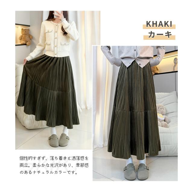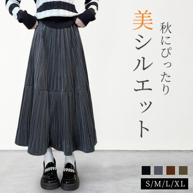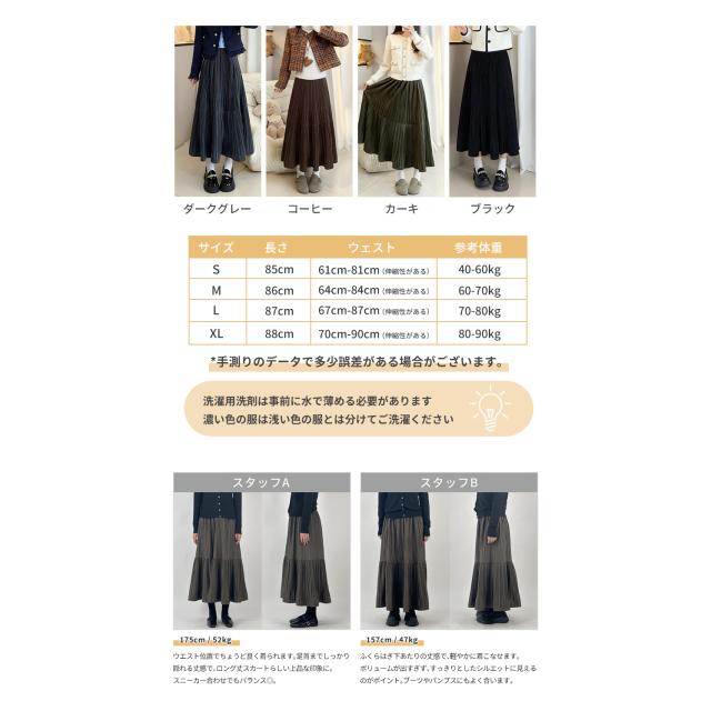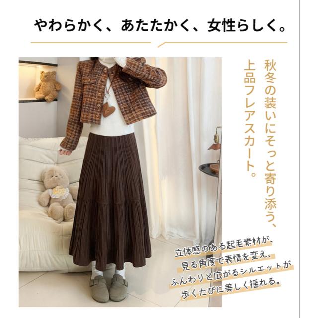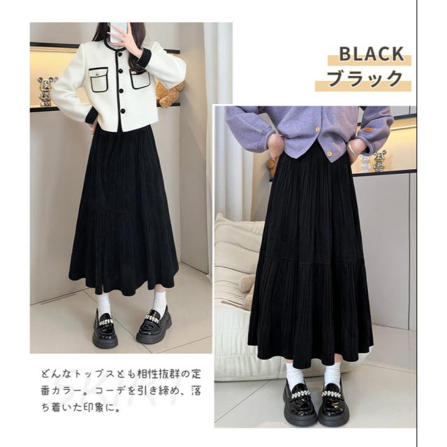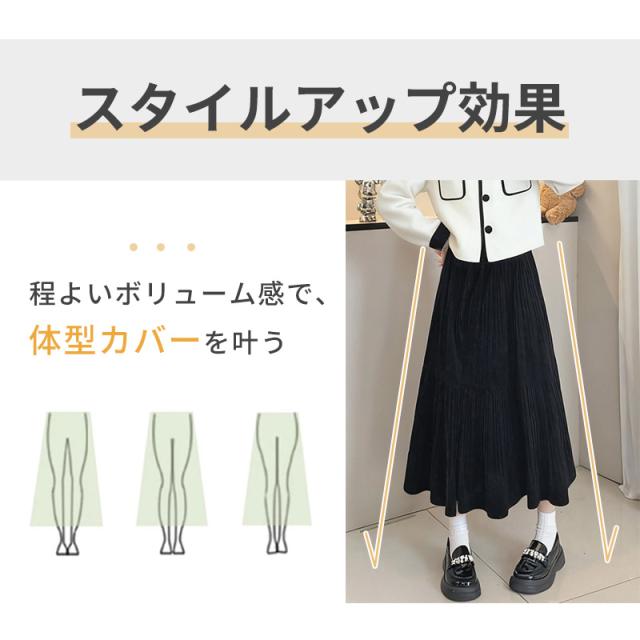 スカート ロング やわらか レディース Aライン ボトム 体型カバー あたたか きれいめ 女性 起毛素材 ふんわり 通勤 オフィス カジュアル 高見え 華やか 着痩 秋冬 防寒 暖か 春 秋 冬 黒