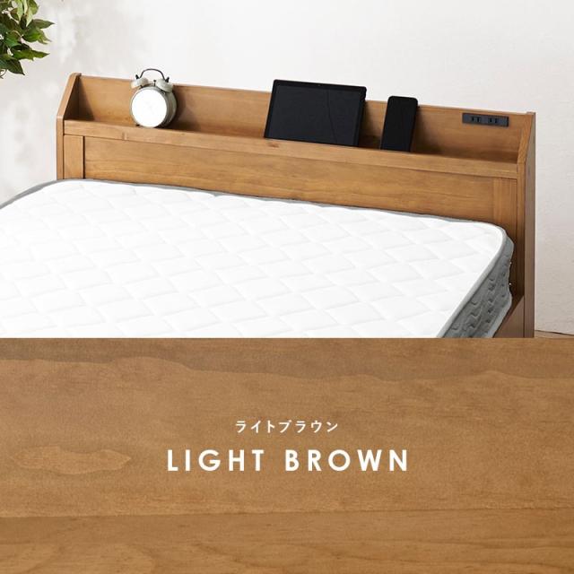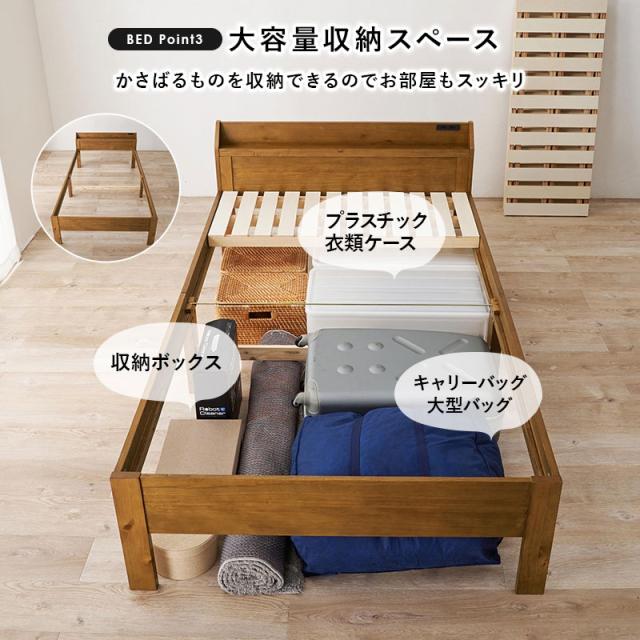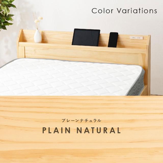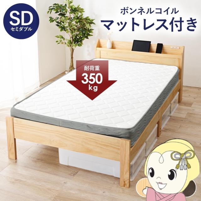 ベッド セミダブル ボンネルコイルマットレス付き 2点セット 耐荷重350kg 頑丈 宮棚・コンセント付き ベッドフレーム すのこ プレーンナチュラル