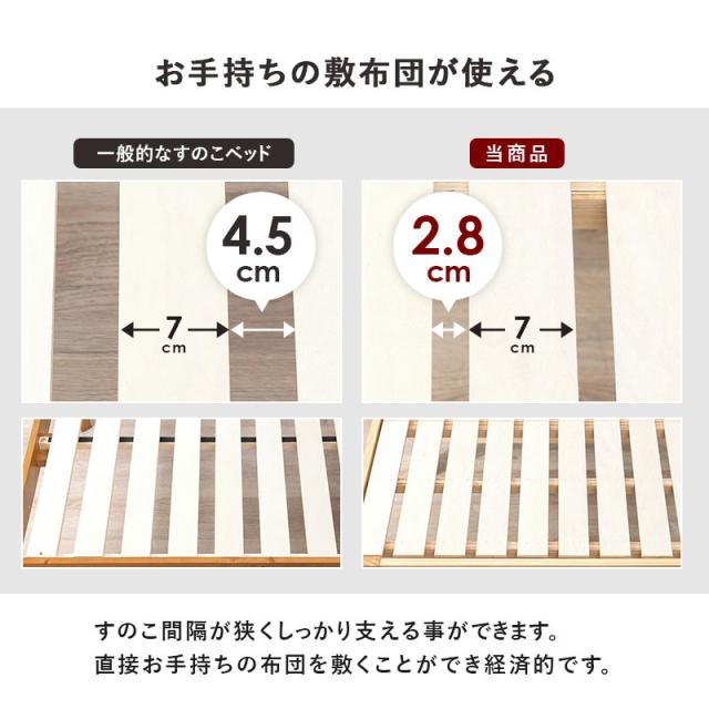 床面の高さが変更できる頑丈な造りのすのこベッド。