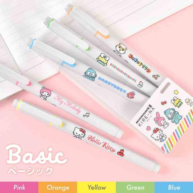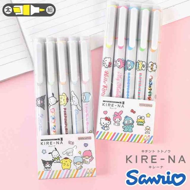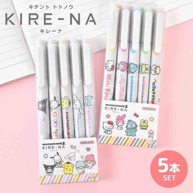 サンリオ 蛍光ペン キレーナ KIRE-NA パイロット PILOT かわいい おしゃれ 5本 5色 セット にじまない 水性 速乾 ラインマーカー ピンク 黄色 緑 淡い 女子 高校生 中学生 文房具 筆記具 ハローキティ ポムポムプリン シナモロール ポチャッコ クロミ マイメロディ キキララ