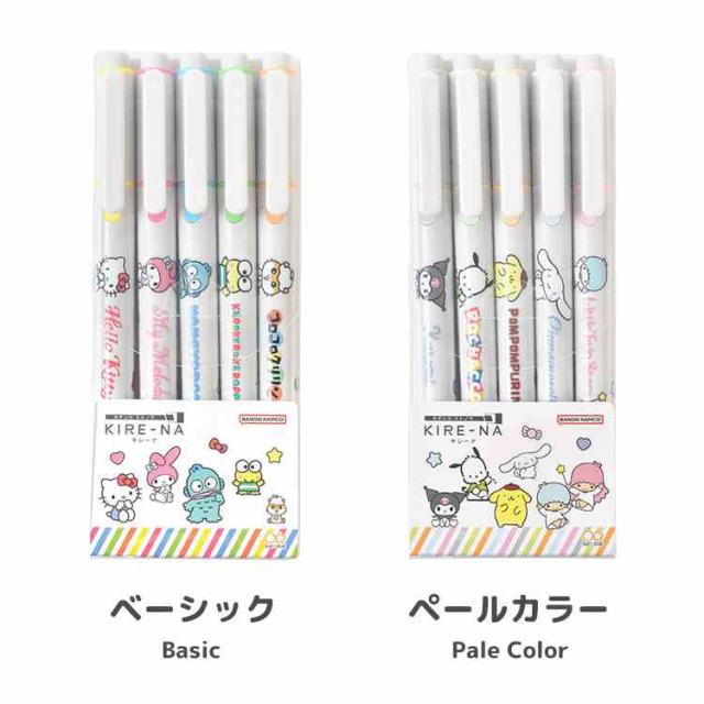 ノートも教科書ももう汚さない!パイロットの新しい蛍光ペン『KIRE-NA(キレーナ)』に可愛いサンリオデザインが登場♪速乾インキで下に書いている文字が滲みにくく、ガイド付きで筆圧に合わせてしなるペン先でキレイにまっすぐなラインを引くことができます。ボックス入りの5本セットでしっかり目立つベーシックカラーと淡く優しい印象のペールトーンの2種類から選べます!