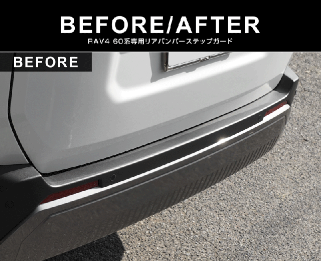 【予約/ブラック:5月20日頃、シルバー:5月30日頃入荷予定】新型RAV4 60系 リアバンパーステップガード 1P 車体保護ゴム付き 選べる3色 シルバーヘアライン ブラックヘアライン カーボン調