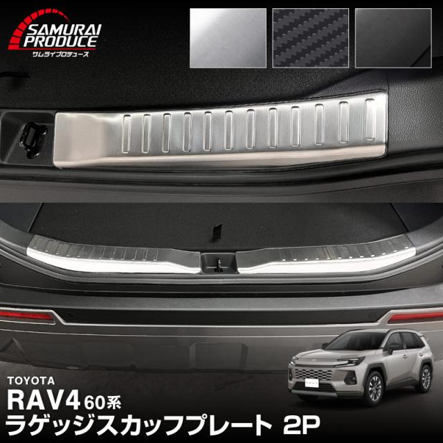 【予約/3月10日頃入荷予定】新型RAV4 60系 ラゲッジ スカッフプレート 2P 車体保護ゴム付き 選べる3色 シルバーヘアライン ブラックヘアライン カーボン調